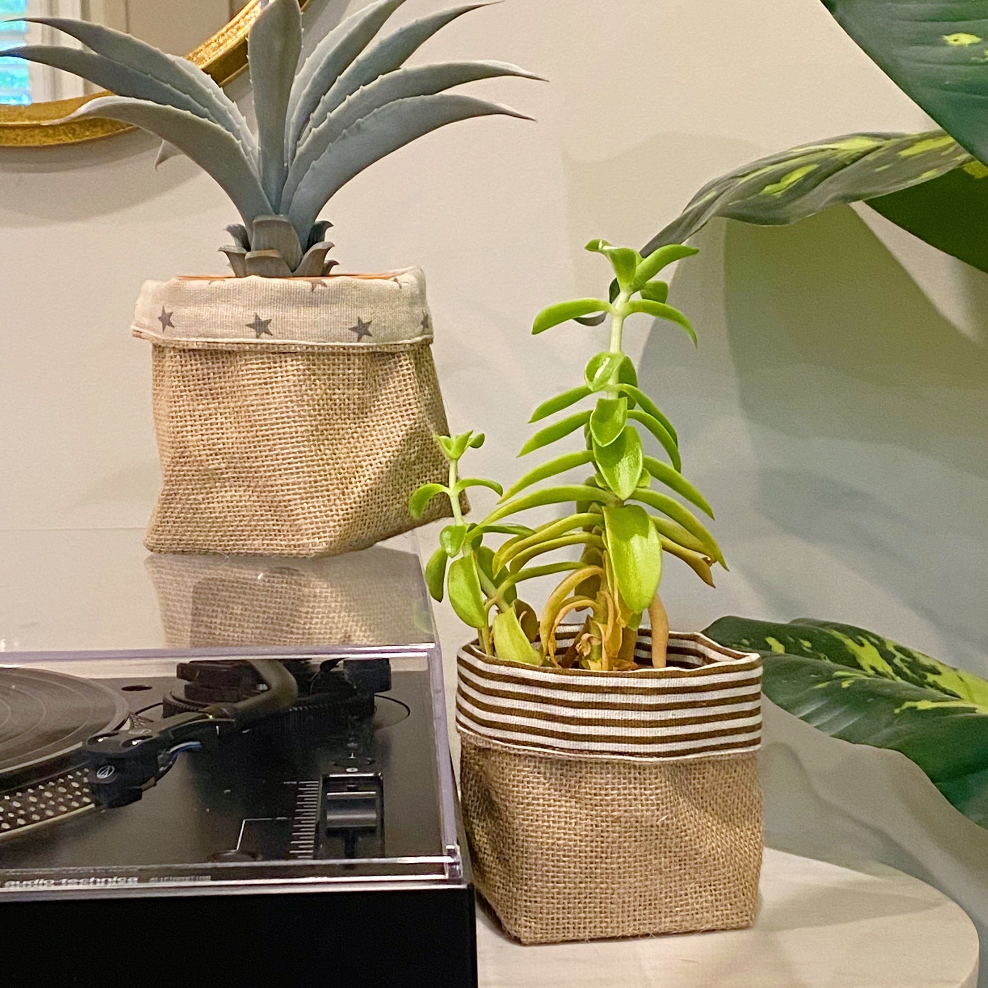 Reversible Burlap Plant Pot Cover - Two Looks in One